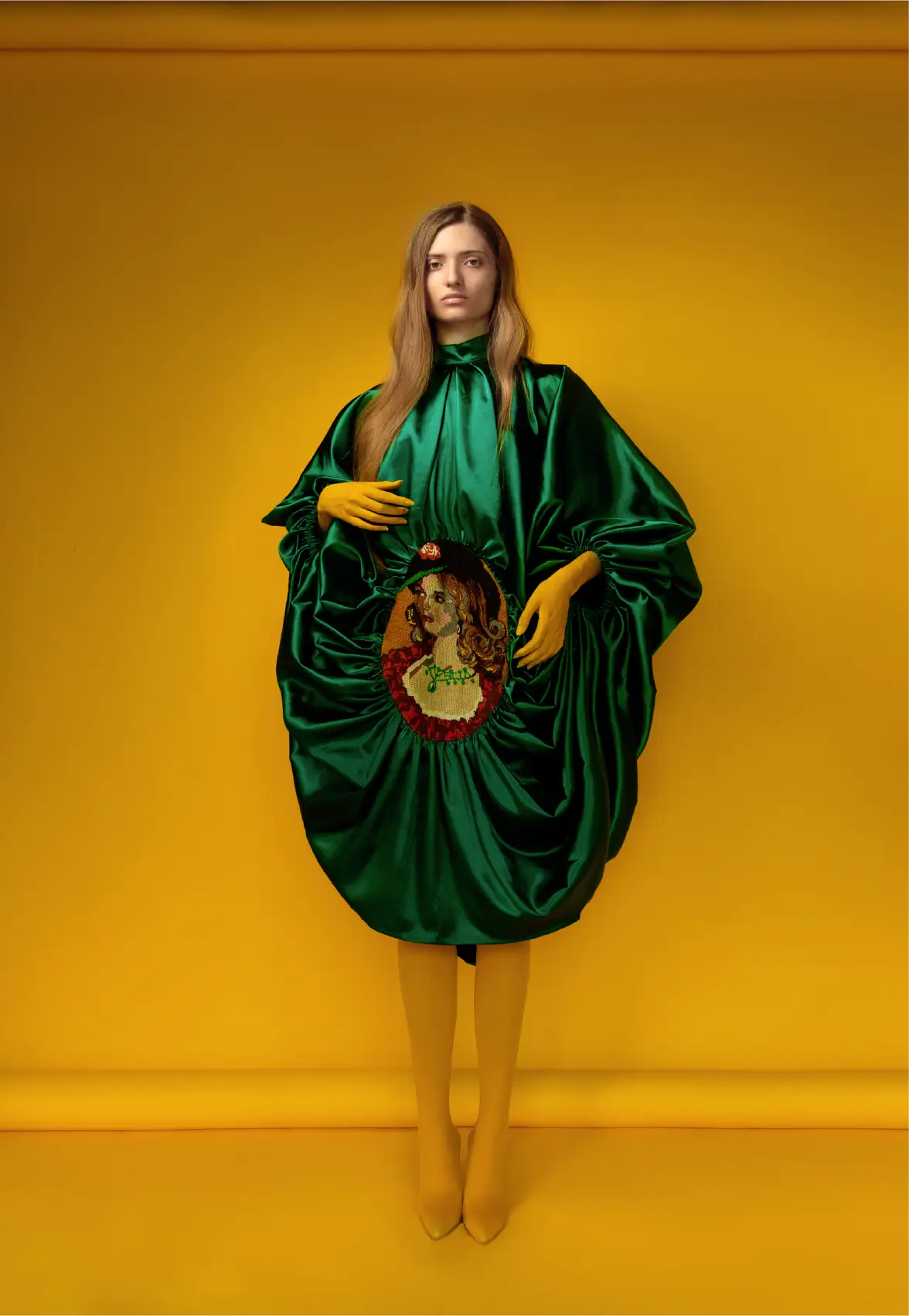 Collection is created in simple shapes and cuts, preserving as much as possible from the original details of goblen. By combining it with the materials and colors of the time when “Goblen” was current, also inspired by the curtain materials of that time by combining satin, tulle, net, velvet, etc.