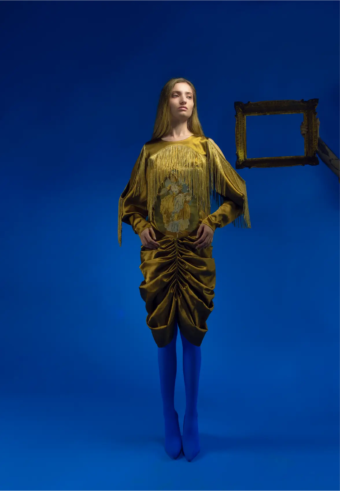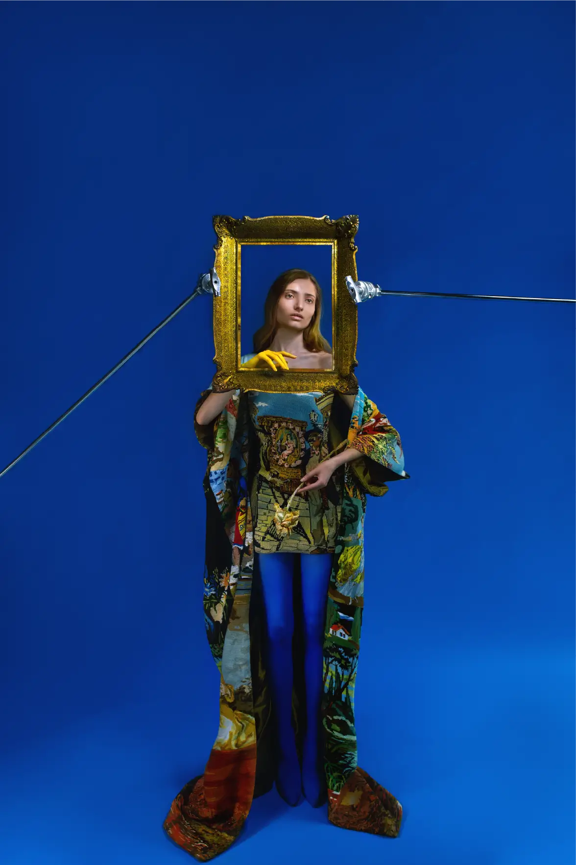I always do my best to create sentimental memories that leave traces all the way back from my childhood. “Goblen” defines a culture spread throughout the Balkans. An art piece made from primitive mechanical paintings embroidered with numbers and colors. In my house and in every other family in the city where I grew up, “Goblen” was the most beautiful decoration of any room and the craftsmanship and talent that defined the traditions of each family, therefore my collection is a new frame created to either wear and shine or use it as a painting frame which belongs on the walls and remain there throughout history.